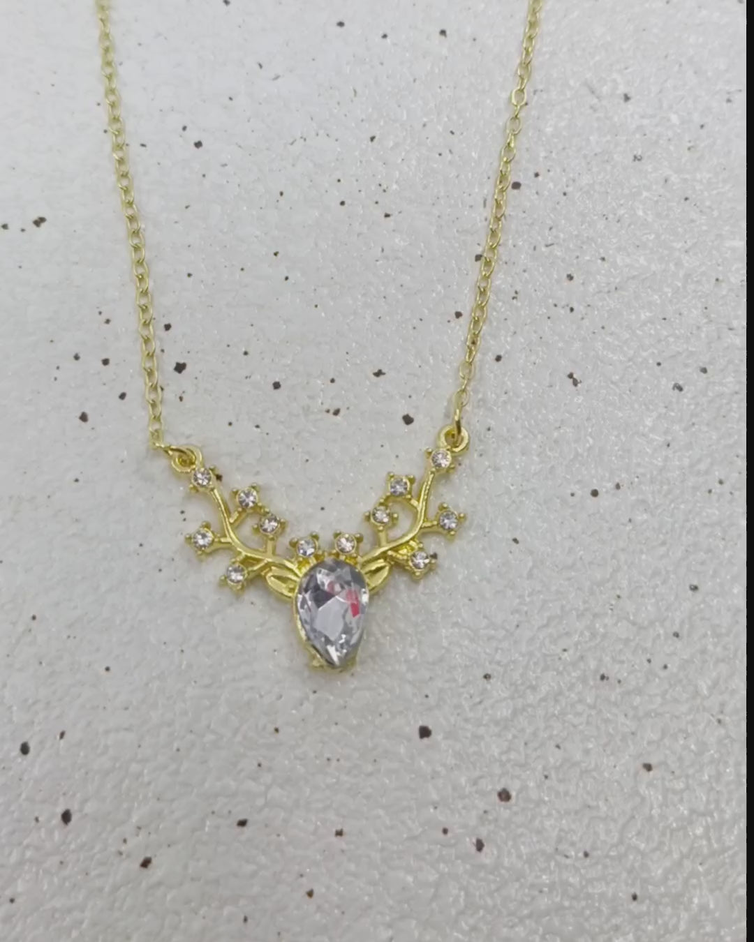 UNI-10288 - Crystal Diamond Deer Gold - Necklace