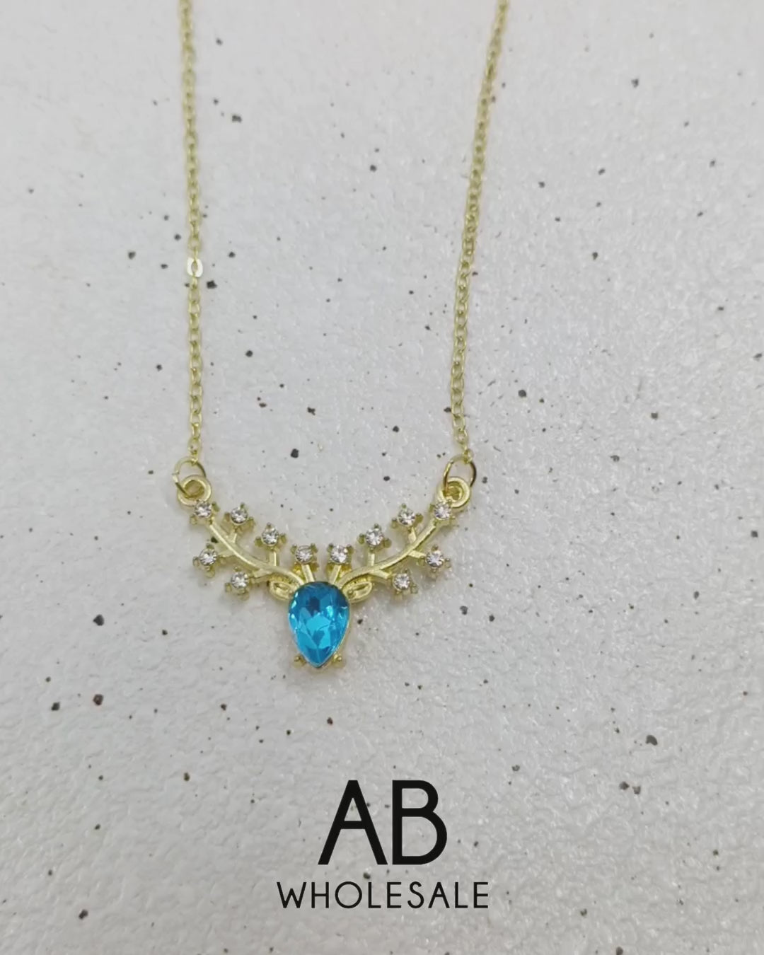 UNI-10289 - Blue Diamond Deer Gold - Necklace