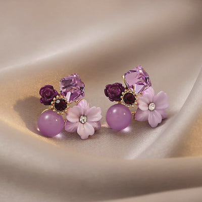 UNI-10290 - Purple Flowers - Earring
