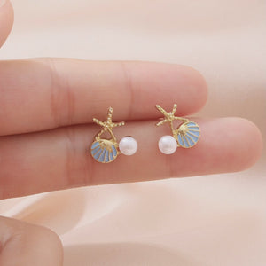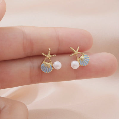 UNI-10312 - Pearl Sea Shell Blue - Earring