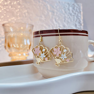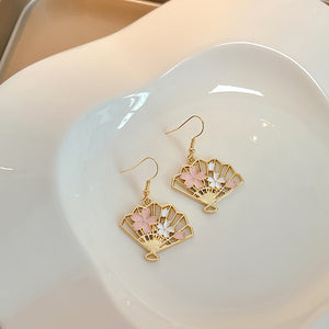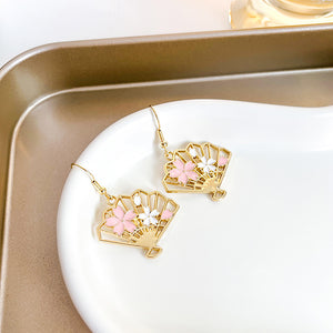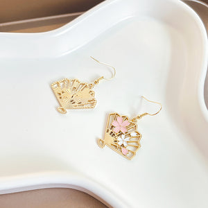 UNI-10376 - Elegant Fan Sakura Flowers Gold - Earring