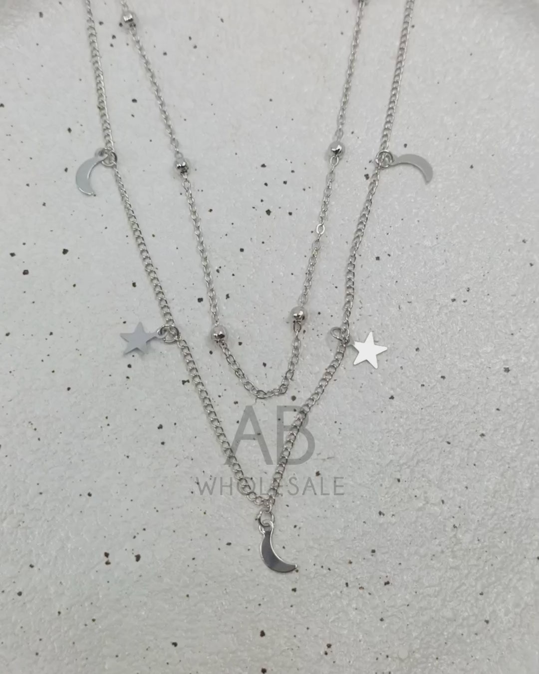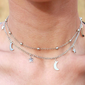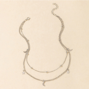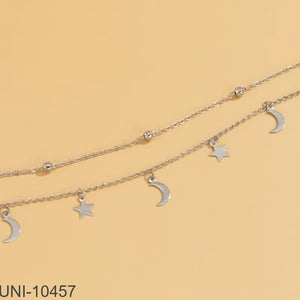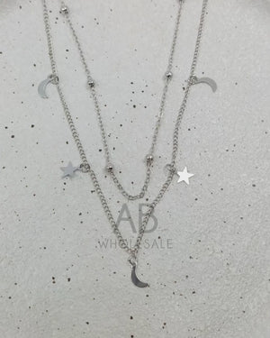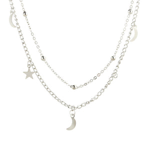 UNI-10457 - Silver Moon & Star Double Layer - Necklace