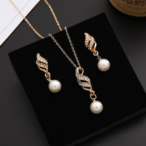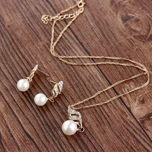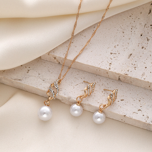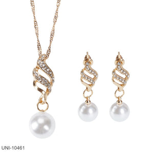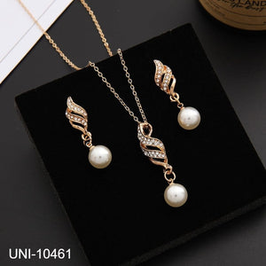 UNI-10461 - Classy Gold Pearl & Diamond - Jewelry Set