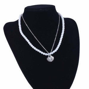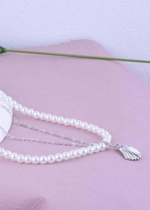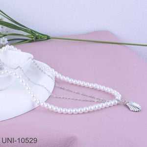 UNI-10529 - Beaded Pearl & Sea Shell Silver - Necklace