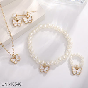 UNI-10540 - White Butterfly & Beaded Pearls - Jewelry Set