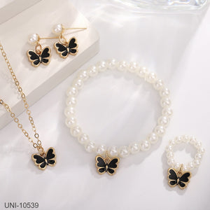 UNI-10541 - Black Butterfly & Beaded Pearls - Jewelry Set