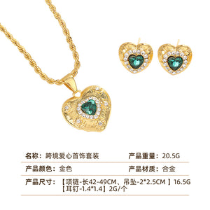 UNI-10543 - Green Crystal Diamond Gold - Jewelry Set