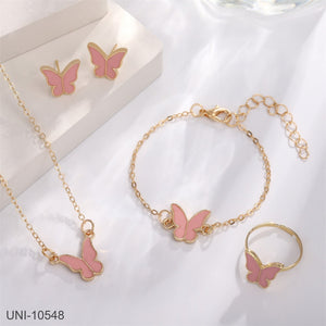 UNI-10548 - Beautiful Pink Butterfly Gold - Jewelry Set