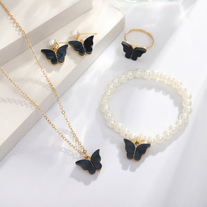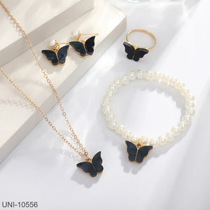 UNI-10556 - Black Butterfly Pearl Gold - Jewelry Set