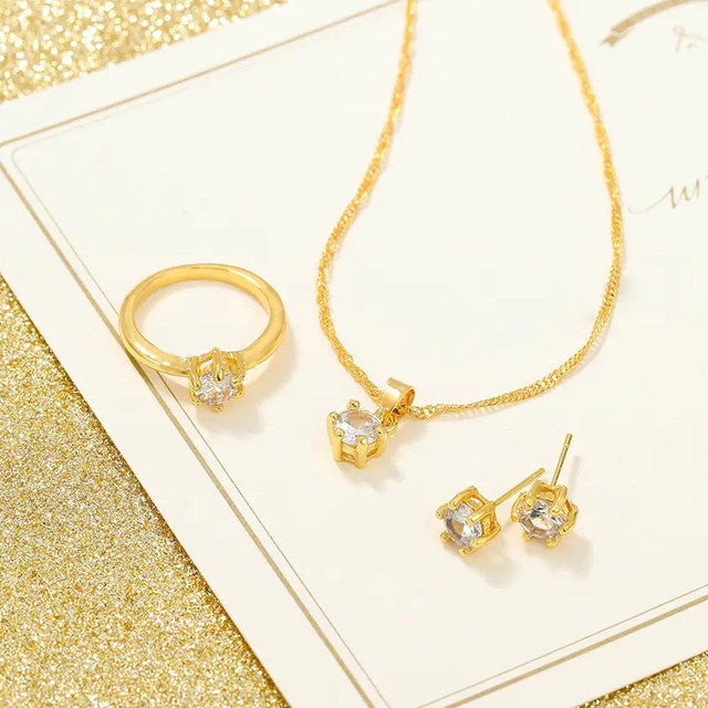 UNI-10561 - Crystal Diamond Gold - Jewelry Set