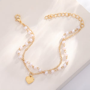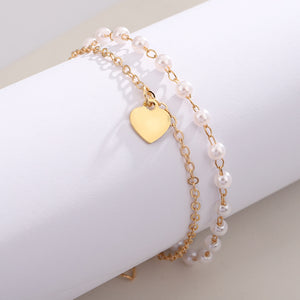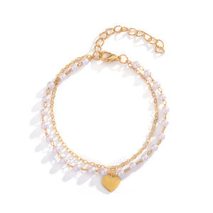 UNI-10563 - Pearly Chain Gold Heart - Bracelet Set Of 2