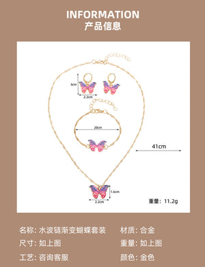 UNI-10570 - Pink Butterfly Gold - Jewelry Set