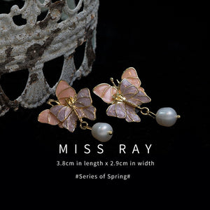 UNI-10573 - Pink & Purple Butterflies - Earring