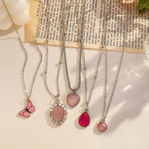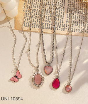 UNI-10594 - Pink Gem & Butterfly - Necklace Set Of 5