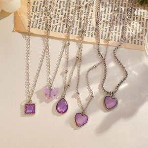 UNI-10595 - Purple Gem & Butterfly - Necklace Set Of 5
