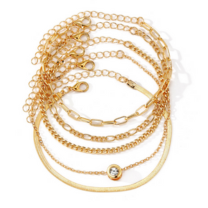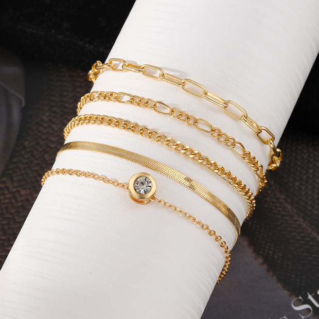UNI-10603 - Diamond & Gold Chain - Bracelet Set of 5