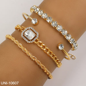 UNI-10607 - Classy Diamond & Gold Chain - Bracelet Set of 4