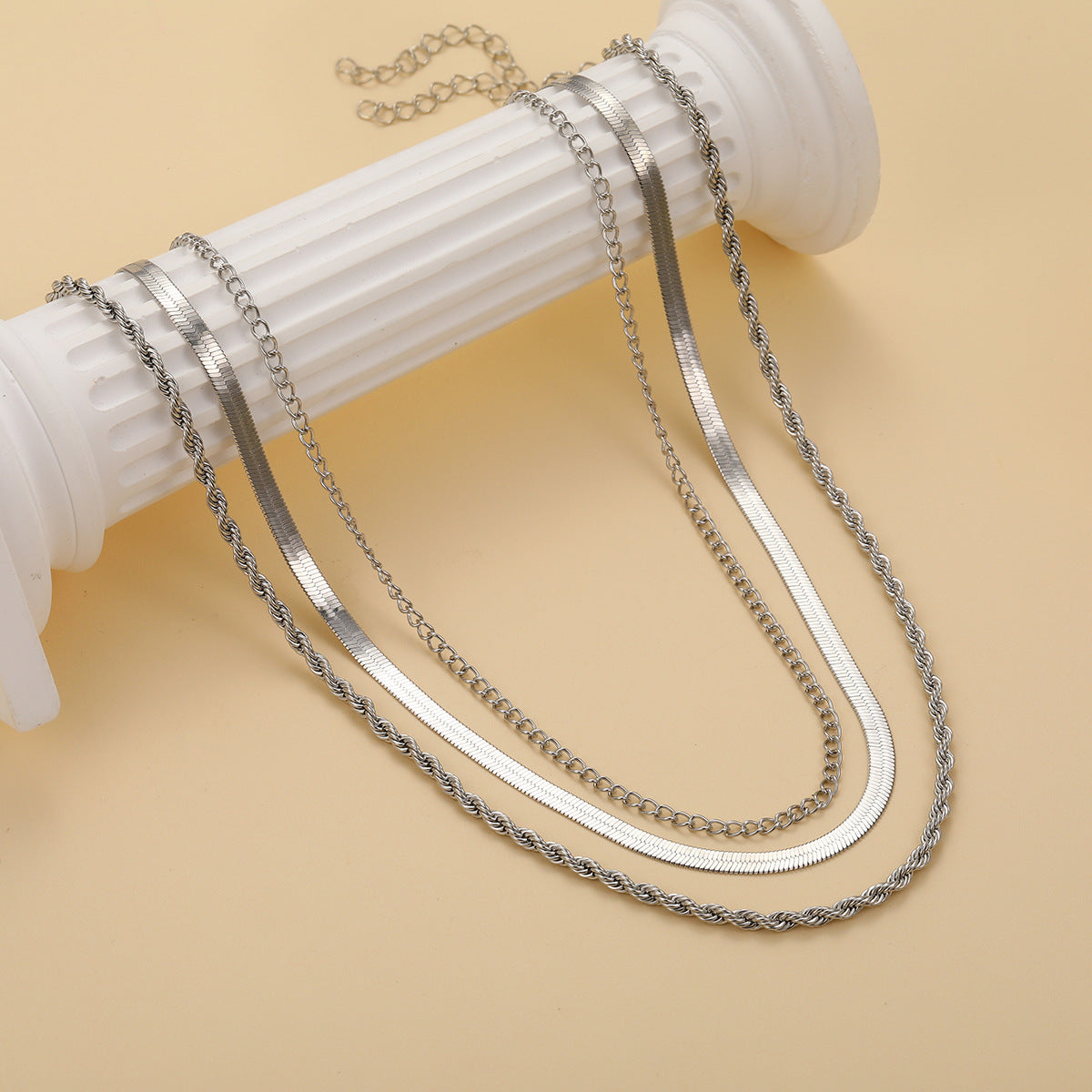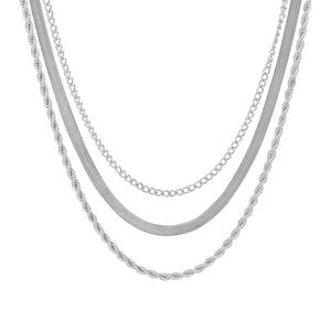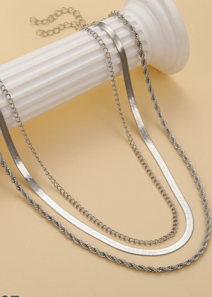 UNI-10637 - Silver Layered - Necklace Set Of 3