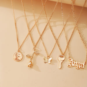 UNI-10645 - Gold Flower & Cuties - Necklace Set Of 6