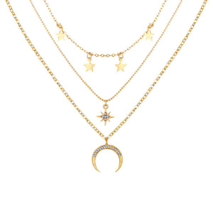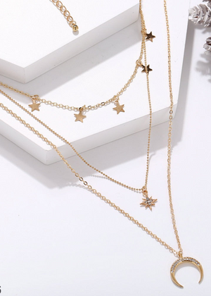UNI-10646 - 3 Layered Mon & Star - Necklace Set