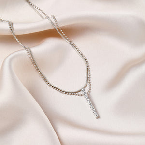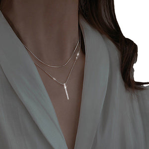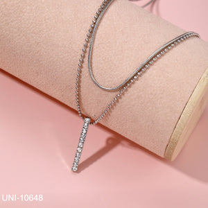 UNI-10648 - Classy Silver Double Layer - Necklace Set Of 2