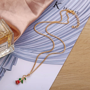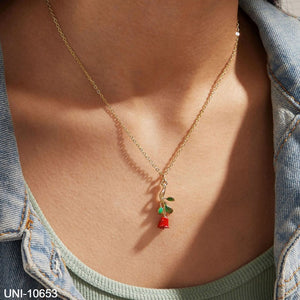 UNI-10653 - Red Rose Flower Gold - Necklace