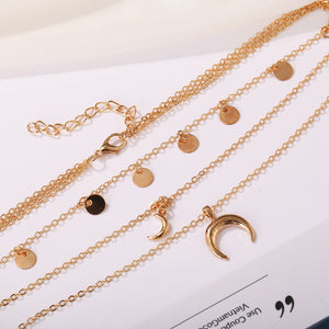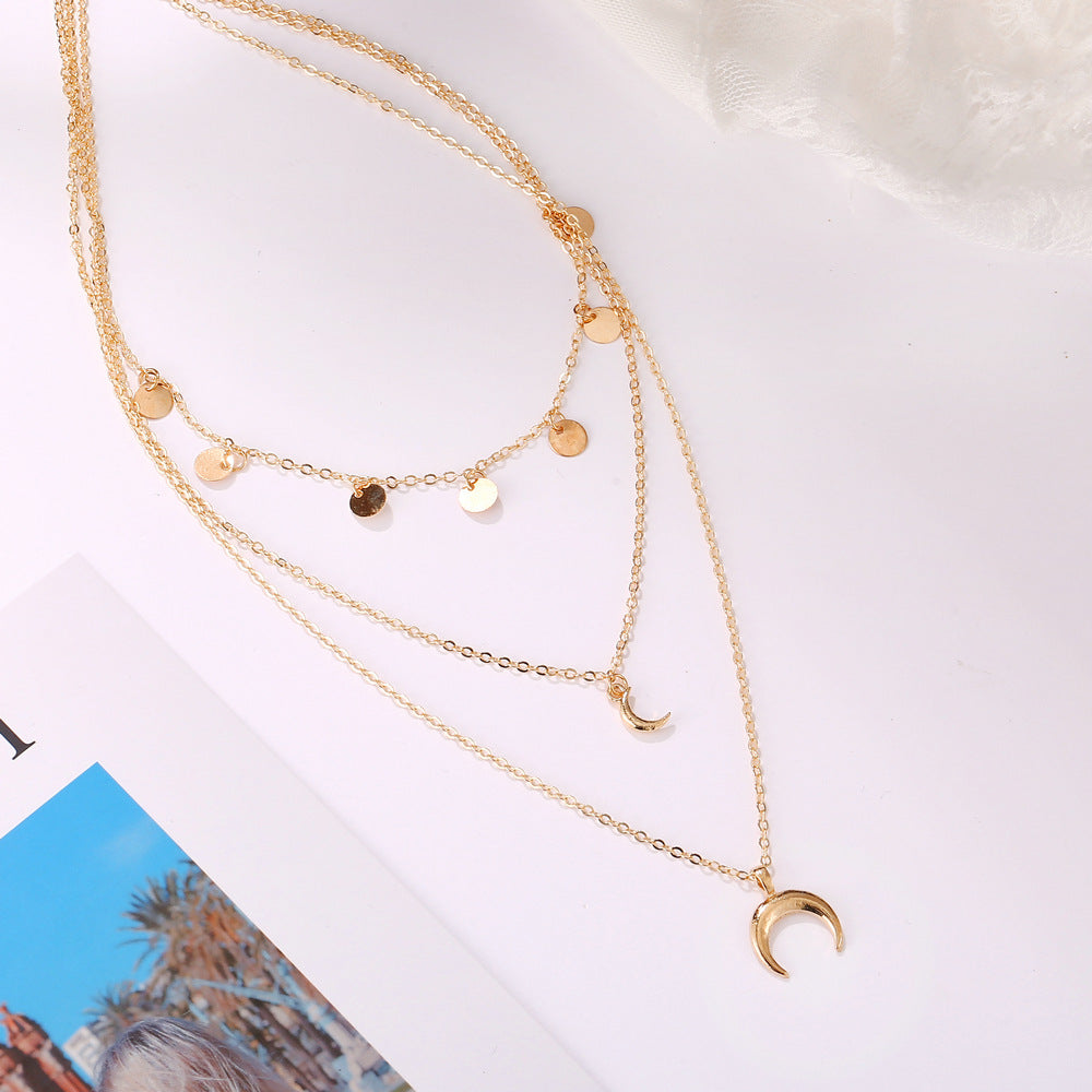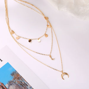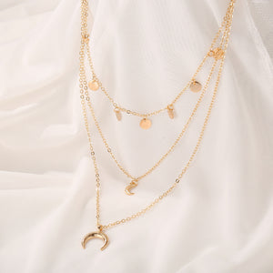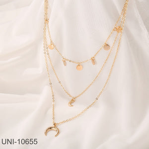 UNI-10655 - 3 Layered Moon & Gold Circle - Necklace Set