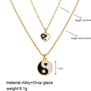 UNI-10661 - Yin & Yang Black - Necklace Set Of 2
