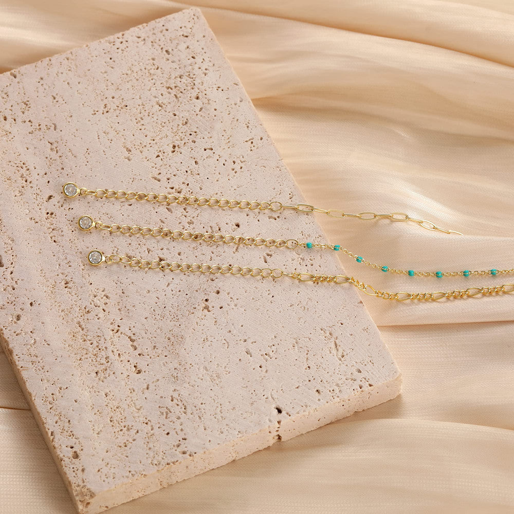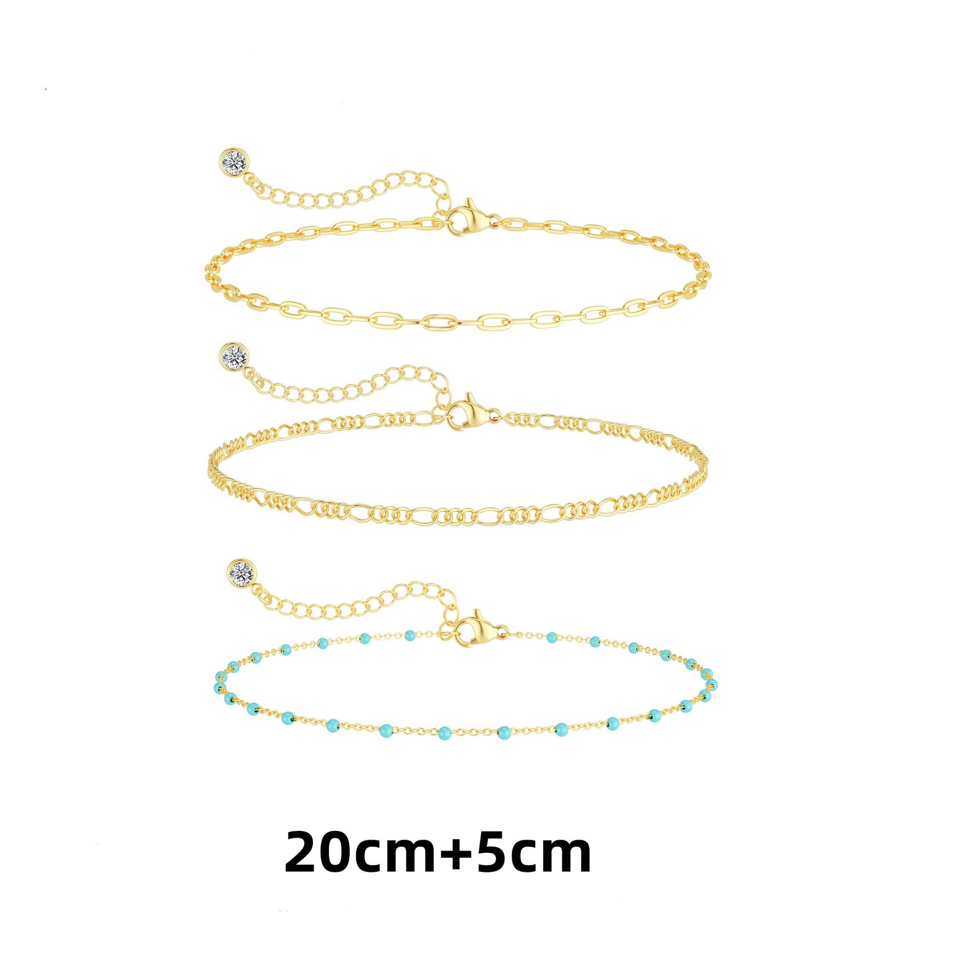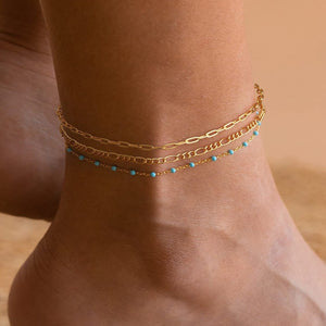 UNI-10682 - Gold Chain Blue Stone - Anklet Set of 3