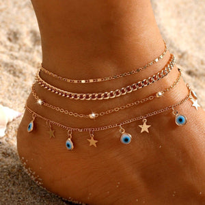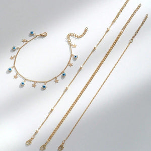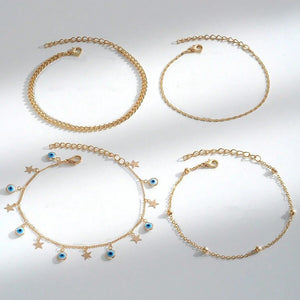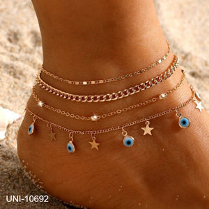 UNI-10692 - Star Charms & Gold Chain - Anklet Set Of 4
