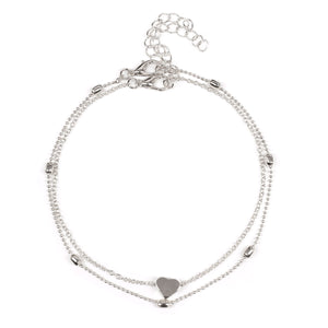 UNI-10703 - Heart Double Layer Silver - Anklet Set of 2