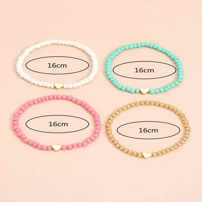 UNI-10706 - Foiled Heart Beaded - Bracelet Set of 4