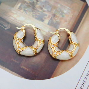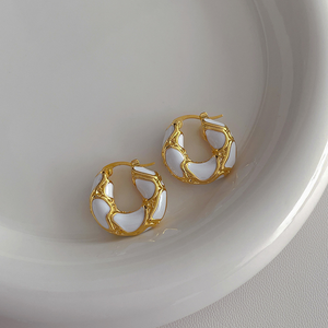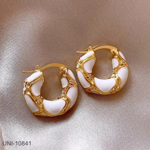 UNI-10841 - White Geometric Gold Foil - Earring