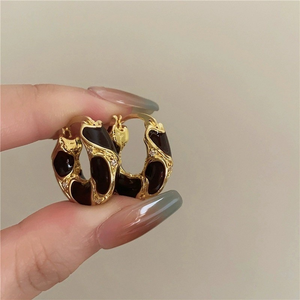 UNI-10842 - Black Geometric Gold Foil - Earring