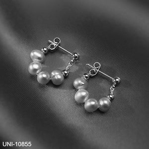 UNI-10855 - Pearl & Foiled Silver - Earring