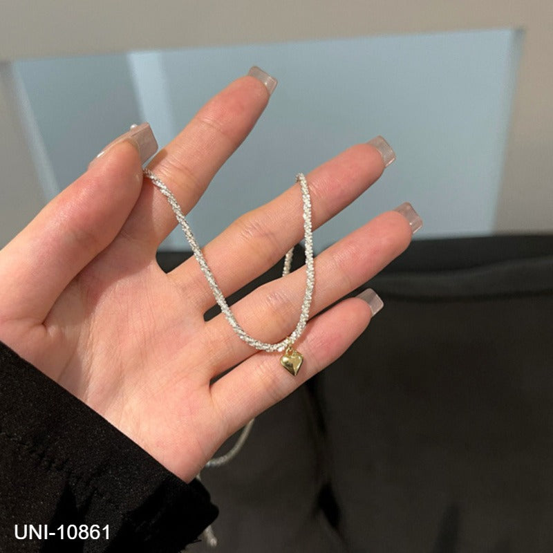 UNI-10861 -Gold Heart Sparkle Silver Chain - Necklace