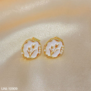 UNI-10909 - WhiteTulip Flower Gold - Earring