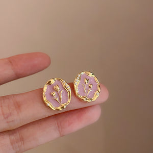 UNI-10910 - Pink Tulip Flower Gold - Earring