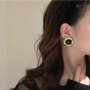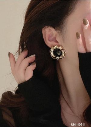 UNI-10911 - Twisted Round Black & Gold - Earring