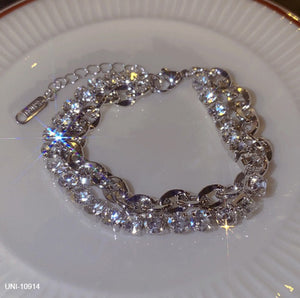 UNI-10914 - Double Layer Sparkle Diamonds Silver - Bracelet