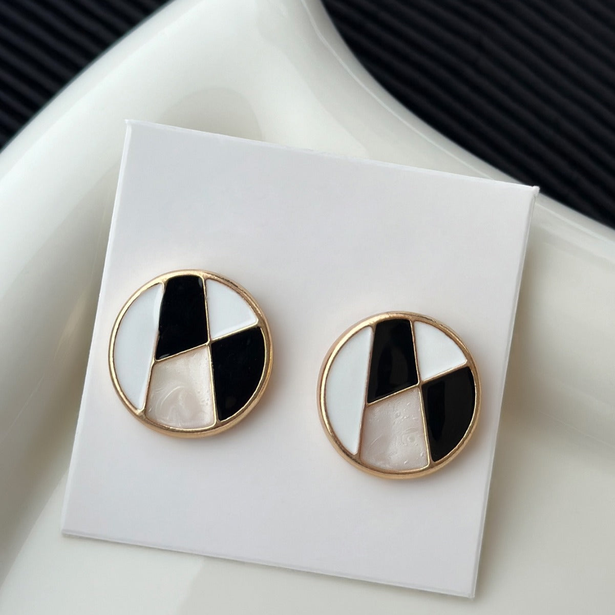 UNI-10923 - Geometric Black & White - Earring