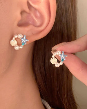 UNI-10978 - Pearly Shell & Star Fish - Earring Style 1