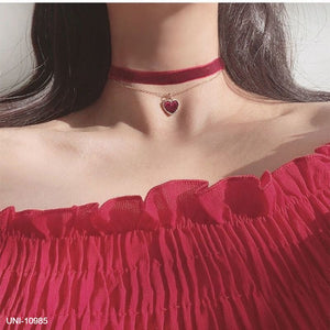 UNI-10985 - Velvet Neck Maroon Heart - Necklace