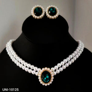 UNI-11025 - Luxury Diamond & Beaded Pearls Gold - Jewelry Set