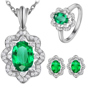 UNI-11045 - Oval Green Diamond - Jewelry Set