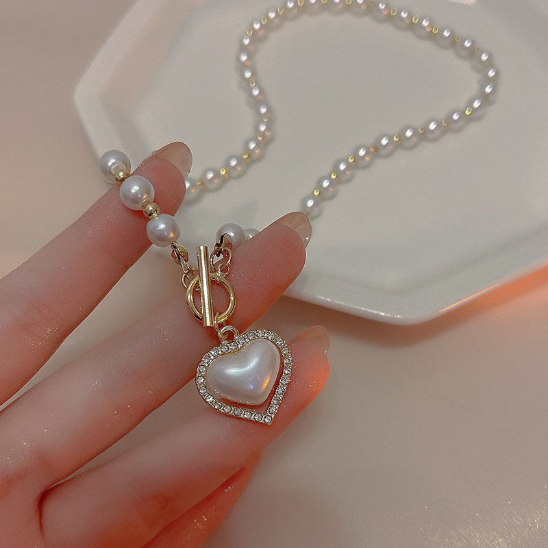 UNI-11048 - Pearl Beads & Heart Gold - Necklace
