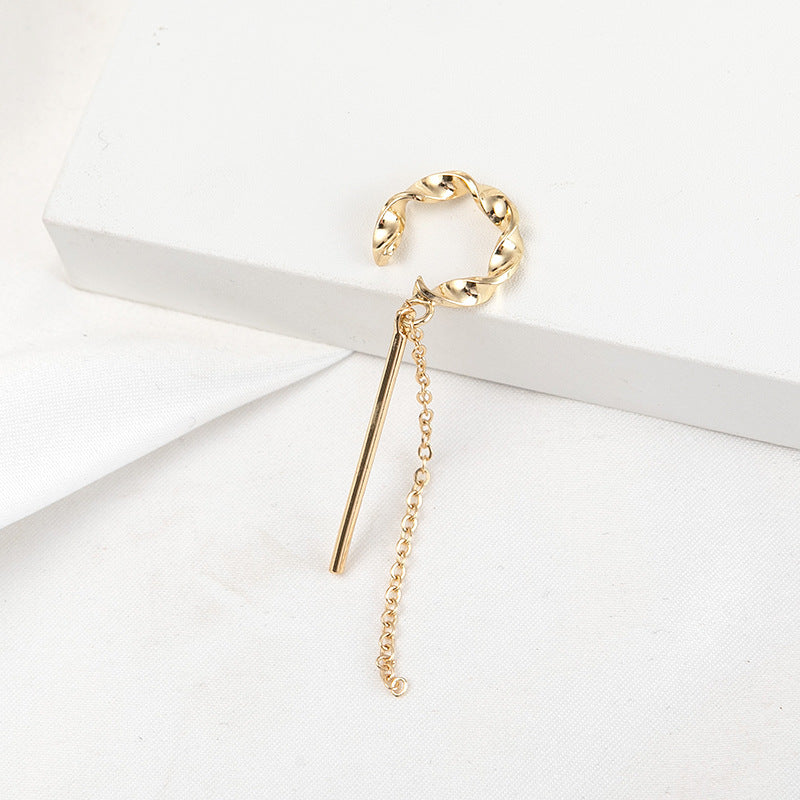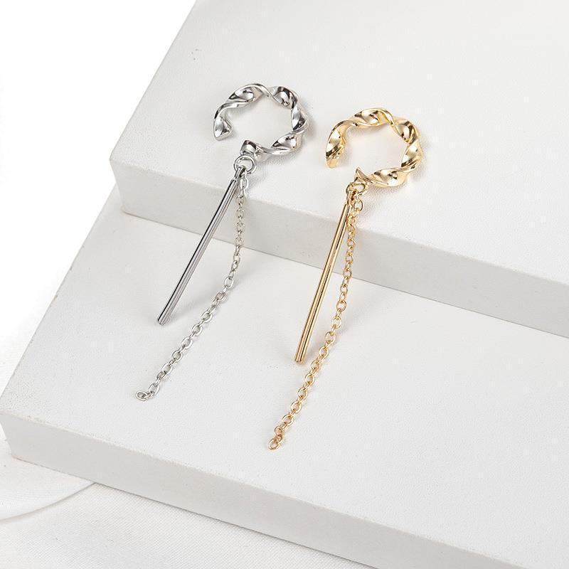 UNI- 11060-61 - Dangling Foiled Gold & Silver Ear Cuff - Earring