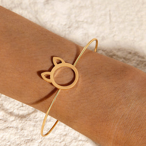 UNI-11075 - Cat Face Gold Bangle - Bracelet