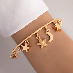 UNI-11092 - Moon & Star Charms Gold Bangle - Bracelet