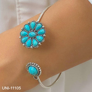 UNI-11105 - Turquoise Stone Silver Bangle - Bracelet